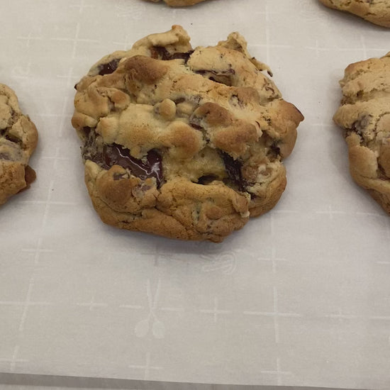 Our large chocolate chip is not your ordinary cookie. We use dark and milk chocolate and add walnuts and pecans. They are fluffy with a crisp outer shell and soft and gooey on the inside. We do not use preservatives. They are made to order. One dozen per box.